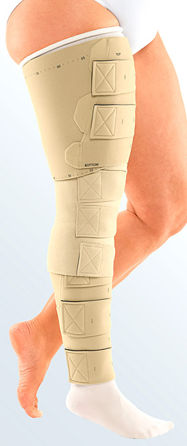 CircAid's Whole Leg Reduction Kit is a new and revolutionary way of treating lymphedema. Designed for use in the early decongestive phase of treatment, the Reduction kit can serve as an alternative to traditional bandaging and wrapping. Featuring a built-in tension system, the Reduction Whole Leg Kit allows for reliable and repeatable application and offers the ability to make small adjustments to the garment as the leg reduces in size.