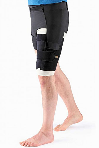 The Sigvaris CompreFlex TC provides soft, comfortable daytime compression. The CompreFlex TC: (1) is easier to use than high compression stockings; (2) has a durable design that resists fraying and tearing; (3) features a highly adjustable, conforming design; (4) is easily worn under most clothing; (5) is exceptionally comfortable; (6) provides low stretch support from the knee to the groin. It can be combined with the CompreFlex BK to provide a full leg compression solution. The CompreFlex TC includes a hip support piece and two cotton liners.