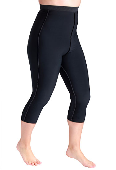 I really like the lymphedema Capri pants! They really smooth down my thighs, abdomen and rear. I wear them over my thigh-hi compression stockings and under my velcro close calf lymphedema wraps. My legs feel secure, they are insulation in this bitter cold of winter. The lumps under my skin that were the size of dimes to quarters are now like grains or peas. It takes all of the process to get here but the Capri's are helping me maintain! I am so thankful these garments are available. I have suffered for more than 40 years, I did not know my legs could feel this good and energized