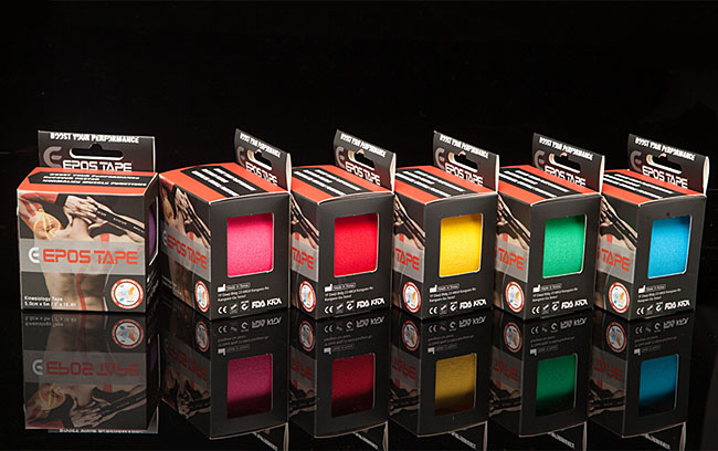 By lifting the skin, Epos Original Kinesiology Tape secures space for blood and lymph to flow smoothly again, allowing contusions and congestions to heal quickly. Epos Tape features a hypoallergenic acrylic adhesive with a wave pattern design that ensures breathability while remaining water resistant. Having an elasticity of 40%, Epos Tape is designed to fit comfortably and will not restrain the body's range of motion. It offers a gentle and effective approach to the re-education of the neuromuscular system, improvement of blood/lymph circulation, and relief from pain. Epos Original Kinesiology Tape features: (1) skin-friendly adhesive for sensitive skin; (2) 100% hypoallergenic cotton and acrylic adhesive; (3) porous breathable wave pattern design; (4) elasticity similar to skin; (5) latex-free construction