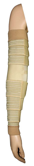 The FarrowWrap Classic Custom armpiece is designed for moderate to severe edema. It was originally designed for lymphedema. It has a rigid composition and resists popping into skin folds and sliding down on abnormally shaped limbs.