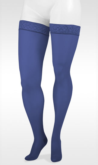 My physical therapist pointed me to the Juzo support stockings to help reduce swelling in my left leg after knee replacement surgery on May 11. She says wearing the stocking daily will reduce by half the length of time I will experience the swelling. Complications during the surgery damaged the tibial nerve, causing numbness and pain in the left foot--which also swells if I don't wear the stocking. The stocking itself is comfortable, and if I wash it out by hand every night and air dry it, the thigh band at the top stays sticky enough that the stocking doesn't drift downward. Getting it on over the numb foot and toes is the hardest part, as it is quite tight in that area. But I'm getting better at that!