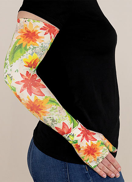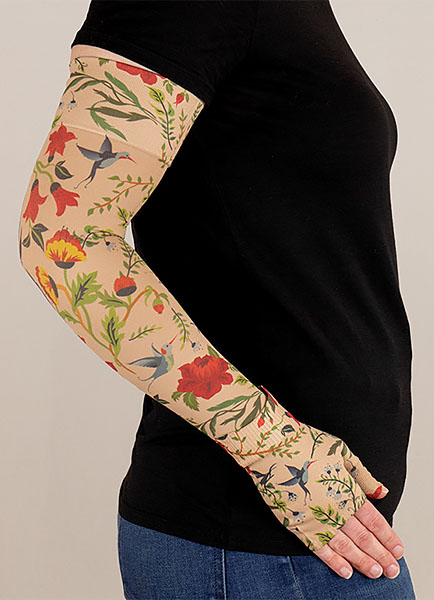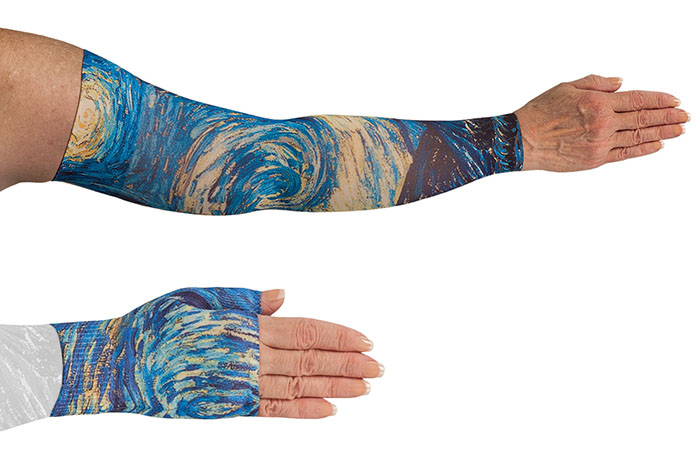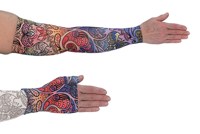 I absolutely love these sleeves/gauntlets! I work in an ER and my patients (including the men) are always asking where I get these wonderful compression sleeves! I find them to be very comfortable and love the beautiful patterns (just wish there were even more tattoo looking ones). I figure if I have to wear something therapeutic I may as well have fun with it. Not only is the sleeve/gauntlet great but the story behind LympheDIVAs is so inspirational. Thank you for supplying such a fine product at such a nice price.