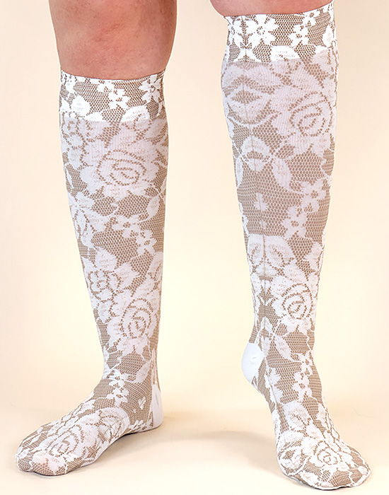 LympheDIVAs garments represent the innovative vision of two women with lymphedema who sought to create not just effective medical-grade compression wear but also comfortable and stylish solutions. Utilizing cutting-edge technology and the covered yarn process in their American-made knit garments, these products offer durable, 4-way stretch fabrics that provide quality compression without compromising on comfort. Featuring breathable materials for cool, dry feet and 99.99% pure silver X-Static© for permanent anti-odor and antimicrobial properties, LympheDIVAs garments ensure all-day comfort and freshness. With additional design elements like an extra-wide non-constricting band, floating heel, and smooth instep, these garments stay securely in place while remaining gentle on sensitive skin, being latex-free and silicone-free. Overall, LympheDIVAs garments seamlessly blend functionality, comfort, and style, empowering individuals with lymphedema to confidently manage their condition with ease.