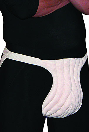 The Male Genital Pad is recommended for scrotal swelling and/or fibrosis. The pad is created using Continuous Flow vertical stitching pattern to help direct lymph flow away from the testicular area toward and alternate lymphatic pathway. This padded insert should be used under a compression garment for added protection, comfort, and optimal results. This pad can also be ordered with soft elastic straps over the iliac crest to hold the garment in place.
