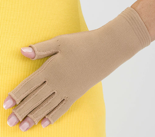 The glove provides good compression and matches the Mediven Mondi sleeve color exactly. The openings for the fingertips are just right so you can use your fingers without restrictions. The flat knit provides better compression than round knit. I ordered a size 3 since 1 of my measurements was in that size range and the other measurement fell in the size 2 range. It fits perfectly. I always receive your products quickly in the mail, and your staff is very helpful.