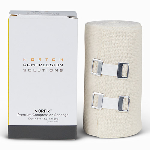 NORFix is a premium short stretch bandage used in multilayered, compression bandages to administer Complete Decongestive Therapy (CDT) to treat lymphedema and other edemas. This gold standard of treatment requires protective foam padding underlayers, thereby making NORFix essential in securing padding while acting as the basement layer of short stretch compression. It is available in 10cm and 15cm widths, as each size is appropriate for arm or leg applications. NORFix can be washed and reused for extended periods, making it an economical investment.