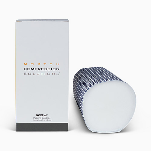 NORPad is an essential component of the multilayered lymphedema or venous edema bandage complex. This premium synthetic cotton bandage acts to offset shearing forces by allowing for movement within compression bandaging layers. NORPad conforms to all contours, is easily cut, and can be reused multiple times. This bandage can also be used as an underlayer for casts and other applications requiring protection from pressure and abrasions.