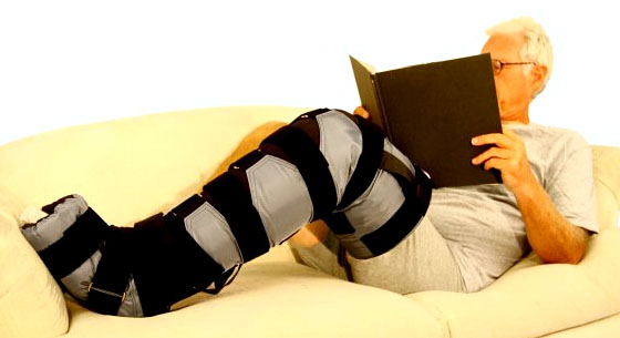 The ReidSleeve applies a gentle, gradient pressure by use of a unique, soft foam insert. Compression is tailored to the patient's needs by a series of adjustable straps. The sleeve easily slides over the affected limb and then the compression bands are adjusted. A specially designed gauge is used to assess the pressure exerted over any region of the limb. The gauge is as easy to use as a blood pressure cuff. This simple procedure insures that compression applied to the patient's limb is consistently applied and in the proper range to provide optimal results. Patients can fit the sleeve in minutes without assistance and have the confidence of knowing they are applying the most effective pressure. As the patient improves the ReidSleeve can be adjusted to the new limb size thereby maintaining the proper pressure range.