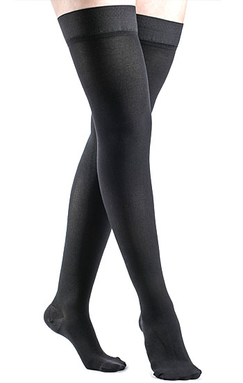 I am prone to lymphedema in my left leg due to multiple surgeries on my lymph system to remove melanoma tumors. I am able to control it fairly well with exercise and elevating my leg at night. When weather is hot and muggy, or I sit too long, or am traveling long distance on a plane or in a car, I use Sigvaris thigh-high compression hose to keep leg from swelling and work very well. I use 20-30 wt when used in the summer and 30-40 wt when traveling.