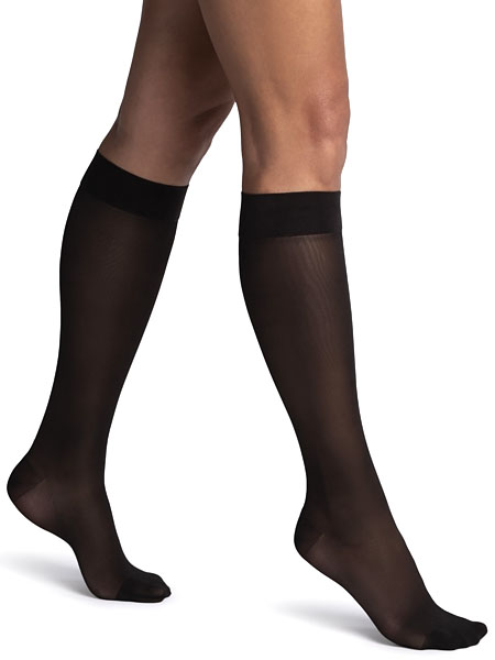 The Sigvaris 980 Dynaven Sheer compression knee-high stockings for lymphedema offer affordable compression combined with exceptional quality. Featuring medical grade compression and sheer fabric for a fashionable look, Dynaven Sheer compression hosiery supports leg and venous health and is an excellent choice of knee high compression stocking for the management of lymphedema, edema or other venous conditions. Sigvaris 980 Dynaven Sheer knee-high stockings features: (1) high-quality sheer fabric; (2) a reinforced toe & heel area for durability; (3) smooth construction that glides on and off