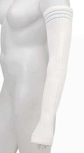 The Juzo SoftCompress Arm Liner is designed be worn under short-stretch bandages, wraps, or compression garments to provide additional compression, cushioning, and ideal pressure distribution. It is easy to don and saves time when applying bandaging or compression garments. The SoftCompress Arm Liner is great for sensitive skin as it is comprised of 100% cotton covering over a foam core. Vertically stitched foam channels create differences in pressure, thereby promoting lymph drainage while preventing soft tissue fibrosis. The arm liners mitigate constriction from the edges of short stretch bandages and protect joint bends. Juzo SoftCompress Arm Liners are an excellent choice over traditional foam and synthetic padding because of their ability to be machine washed for repeated use while remaining durable and comfortable. SoftCompress Arm Liners are available in 6 sizes for a perfect fit and includes a SoftCompress Hand and Elbow Pad.