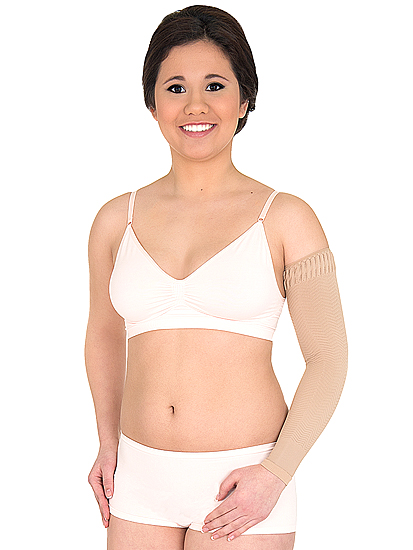Exceptionally comfortable, Solidea Active Massage Arm Bands feature groundbreaking technology that combines lighter compression with patented 3D wave fabric to activate a gentle massage as the body moves. This massage action enhances the body's ability to rid itself of excess fluid and helps improve microcirculation. These seamless arm bands are an ultra comfortable solution for those who need compression sleeves that stay in place and will not slide or roll during use. Instead of traditional silicone dots or silicone bands that are irritating and constrictive, Solidea created an innovative stay-up stretch band that contains silicone threads to ensure a comfortable and non-constrictive solution, even for those with sensitive skin. Easy to put on and take off, Active Massage Arm Bands will stay in place comfortably all day and all night.