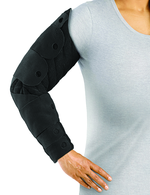 The TributeWrap Wrist to Axilla is an off-the-shelf adjustable foam compression garment for lymphedema or other edema management of the arm. It is intended for use during the evening, night, or other low activity periods. It comfortably adjusts to the patient's unique arm shape and lifestyle to help maintain gains made during therapy, while allowing the flexibility to support further reduction. It also offers great features to benefit maintenance therapy: (1) durable hook and loop straps and easy-to-pull finger grip holes for easy donning; (2) Coolcore fabric that rapidly wicks away sweat and moisture to regulate body temperature to keep you cool and comfortable; (3) proven foam technology to soften fibrotic tissue and support skin health; (4) chevron channeling based on MLD principles of directing fluid to the collateral pathways; (5) includes complimentary Sleep Sleeve to ensure the straps do not get tangled in the sheets; (6) angled straps and darting at the elbow to support freedom of movement